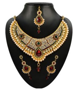 As the name suggests, navratan necklace or jewellery contains nine kinds of precious and semi-precious stones and gems in it.
